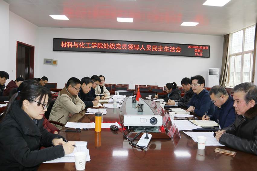 为认真落实我校《关于认真开好2018年度处级党员领导人员民主生活会的通知》文件精神,加强学院领导干部勇于担当作为及求真务实的作风,2019年1月16日下午,材料与化工学院处级党员领导人员民主生活会在工三—410准时召开,会议由学院党委书记路金龙主持,校党委书记刘卫国应邀参加并发表重要讲话。