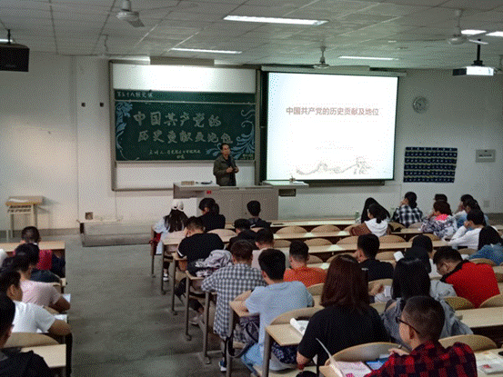 为加深学员对党的认识与理解,提高同学们的思想政治觉悟,材料与化工学院于2019年5月16日晚7时在教一-103举行第五十八期第六次党课,会议由学院党委组织员刘强珺主持,本次党课主题为中国共产党的历史贡献及地位,由马克思主义学院院长田亮教授进行授课。