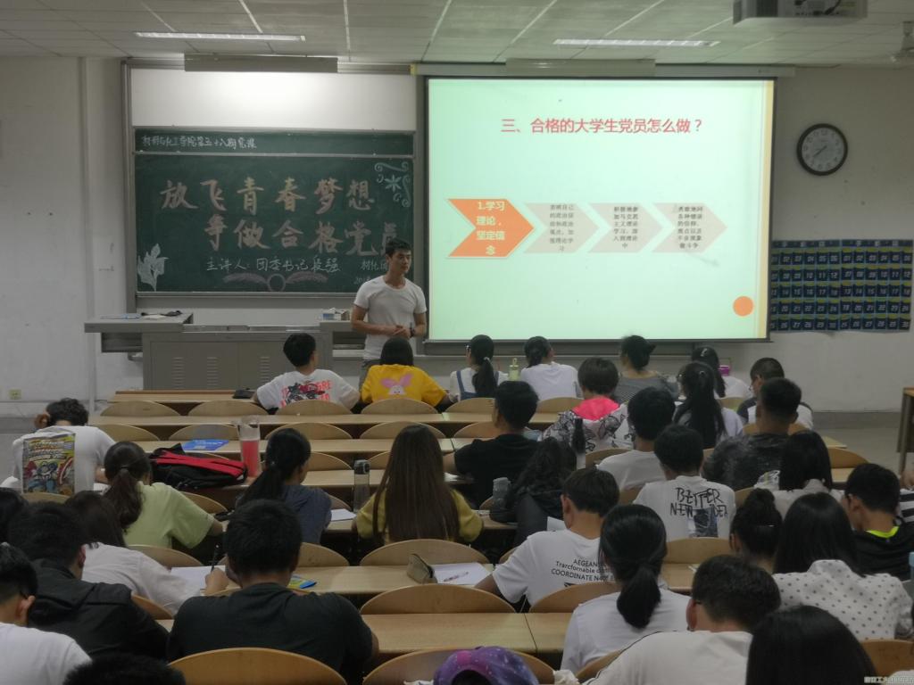 为使学员更深入了解党规党纪,提高学员自身政治觉悟,不断向合格党员标准要求靠拢,西安工业大学材料与化工学院于2019年5月23日晚六时在教二-201开展了以“放飞青春梦想,争做合格党员”为主题的第五十八期第七次党课。