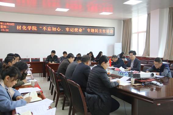 12月9日,材料与化工学院召开“不忘初心、牢记使命”专题民主生活会,会议由学院党委书记惠增哲主持,校党委书记刘卫国参加并发表重要讲话。
