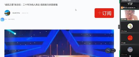 活动中,张瑞红组织支部成员一起观看了2019年度全国十大“诚信之星——张志旺:“我答应的事许下的承诺一定要做到”视频,接着在张瑞红带领下学习““诚信之星”张志旺“二十年为他人奔走 助困者力扶弱者强”先进事迹,张志旺20年来,始终以真诚之心,行信义之事,替父还债、照顾二嫂为其养老送终、资助学生“圆梦”等行动。张瑞红强调诚信是我们立足之本,是能够让别人一生相信你的一种品质,我们要讲究诚信,让诚信融入到我们日常生活点滴中,同时我们应该具有奉献精神,要有责任、有担当。接着支部成员任建国、李玫萱也分享了自己的心得,学习张志旺用实际行动诠释了什么叫做一诺千金,是社会主义核心价值观的模范践行者,我们应该学习并将这种精神发扬推广。
