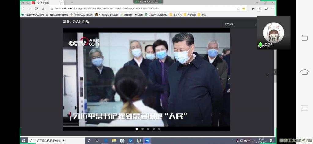 2020年4月17日,材料与化工学院学生第三党支部组织线上观影活动。支部书记段强老师以及支部全体党员参加此次组织生活会。