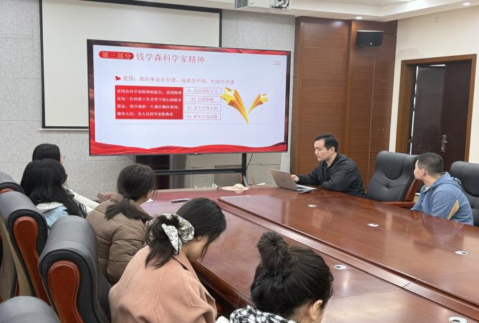 为弘扬科学家精神,厚植青年党员家国情怀与使命担当,12月10日,材料与化工学院研究生第二党支部在工3-304会议室开展“青年说”微党课系列活动。本次微党课以“感悟钱学森精神,践行初心使命”为主题,通过“青年讲、青年学、青年议”的互动形式,让榜样精神直抵青年党员心底。活动由支部书记张启妍主持,学生党员刘新钊主讲,支部全体党员参加。