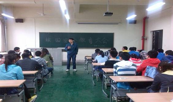 2014年4月11日,西安工业大学材料与化工学院于在工3-504召开校园安全教育大会,12级学生宿舍舍长参加。