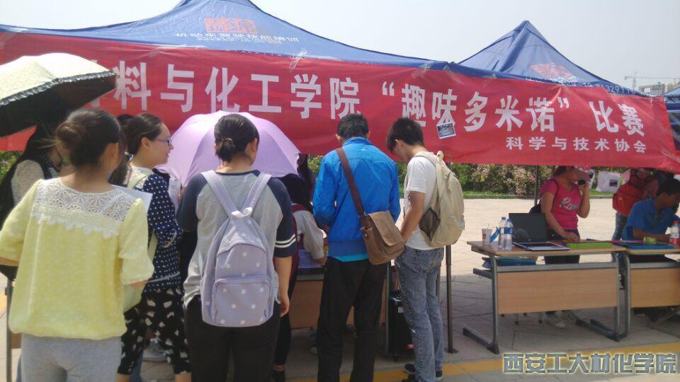 为培养同学们的探索兴趣的能力,丰富同学们的课余生活,材料与化工学院科学与技术协会在2015年4月29日于经纬广场开展了趣味多米诺活动的前期宣传活动。