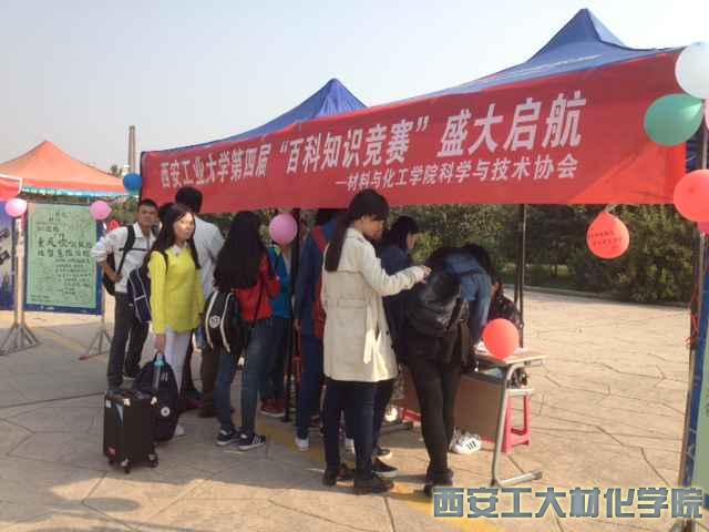 2015年10月14日,材料与化工学院科学与技术协会于西安工业大学经纬广场举办了为期两天的百科知识竞赛宣传活动,科协全体成员参与活动。