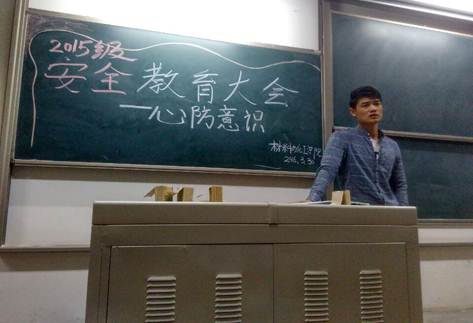 目前社会上有不法分子针对大学生自我防范意识差,贪图小便宜的心理,对在校大学生实施多起电信网络诈骗。为了提高学生的防范意识,材料与化工学院15级辅导员段强于2016年3月30日在自习室召开安全教育大会,会议围绕“提高防范意识,谨防电信诈骗”,15级全体学生均按时参加会议。