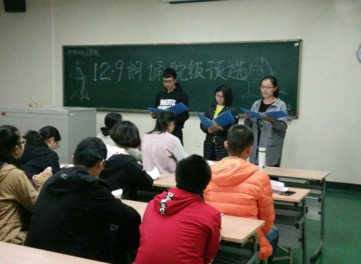 2016年11月9日,材料与化工学院12· 9朗诵院级预选在工3-504顺利举办。本次比赛将初步选出优秀的人才进入决战对抗赛,进而推送往校级。材料与化工学院团委秘书部部长李梦、张萌蕾,宣传部部长冯浩担任本次比赛的评委。