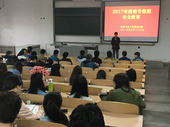 为了确保学生假期安全,3月29日,材料与化工学院在教3-217召开2013级清明节假期安全教育大会,会议由辅导员陈远林主持,2013级全体学生参加了此次大会。