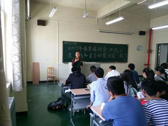 2017年4月17,为迎接即将到来的运动会,材料与化工学院在工三-504召开了2017年春季运动会运动员动员大会。本次大会旨在鼓舞和激励运动员的积极性,提振士气,为运动员解决比赛过程中可能出现的困难,让运动员能够全身心的投入比赛,争取为学院赢得荣誉。材料与化工学院党委副书记张治宏老师、团委书记段强老师、团学科主席团和所有运动员出席本次会议。