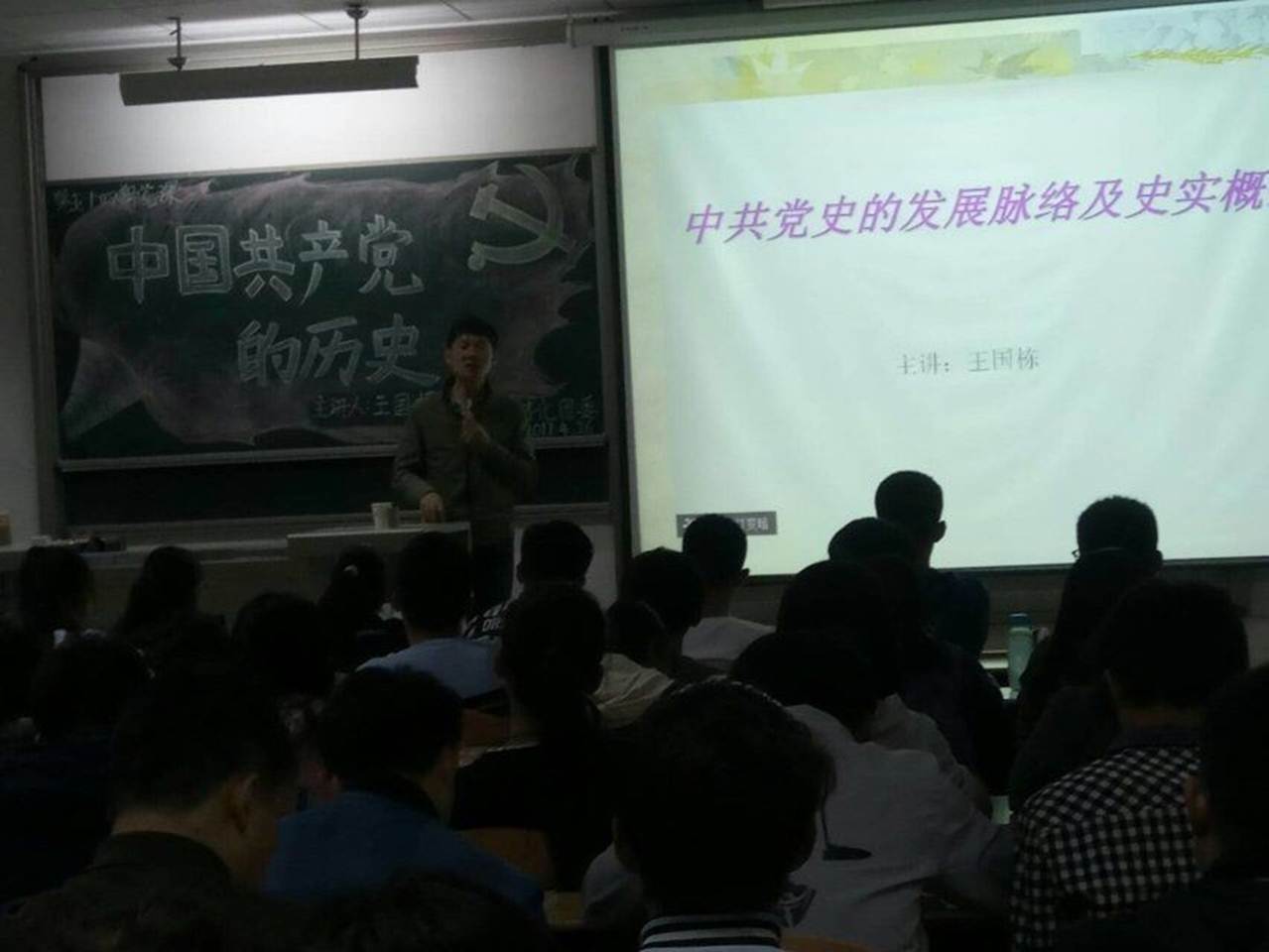 2017年4月26日,材料与化工学院团委在教二210教室开展第五十四期党课第四讲,并邀请到了2016级辅导员王国栋老师为同学们讲解中国共产党的历史。各年级推荐的优秀共青团员参加了本次党课培训。