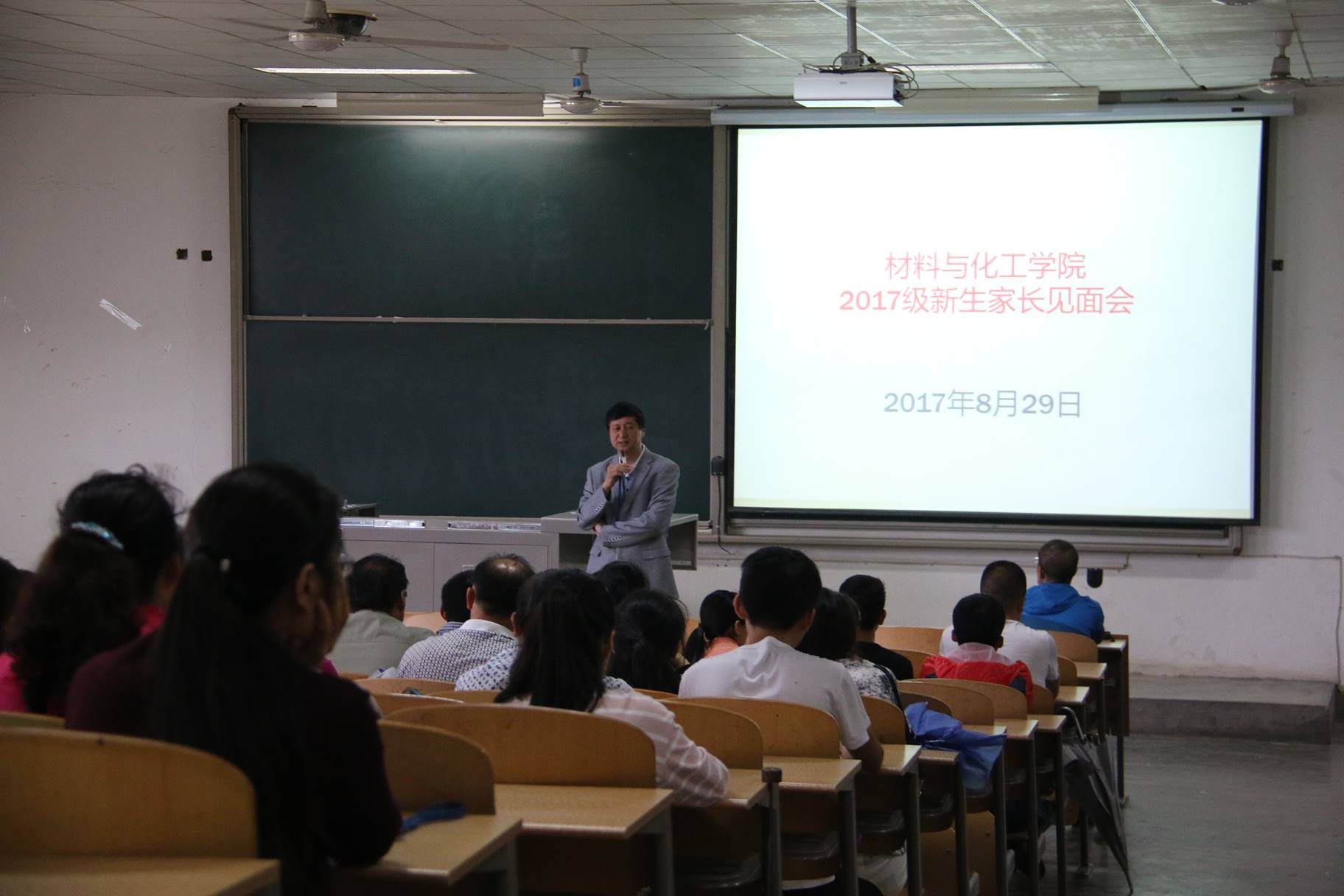 2017年8月29日下午3点30分,由学院党委书记路金龙老师、党委副书记张治宏老师、高分子材料与工程专业教授陈卫星老师及17级辅导员刘强珺老师主要就学院概况、本科教育情况及师资力量等进行了详细介绍。会议开始,由学院党委副书记张治宏老师主持,邀请学院党委书记路金龙老师对学院整体情况、各个专业发展历史及就至今为止各专业所取得成就进行了概述。随后由高分子材料与工程专业教授陈卫星老师对学院的科研实力、师资力量、考研等教学基础情况进行详细介绍。之后由17级辅导员刘强珺老师表达对新生的期望,希望同学们能在尽快适应新环境,投入到新的学习氛围之中。期间,新生及学生家长积极提问,都得到老师们的详细解答。最后由学院党委副书记张治宏老师总结本次会议内容,对新生接下来的军训等工作进行通知安排。
