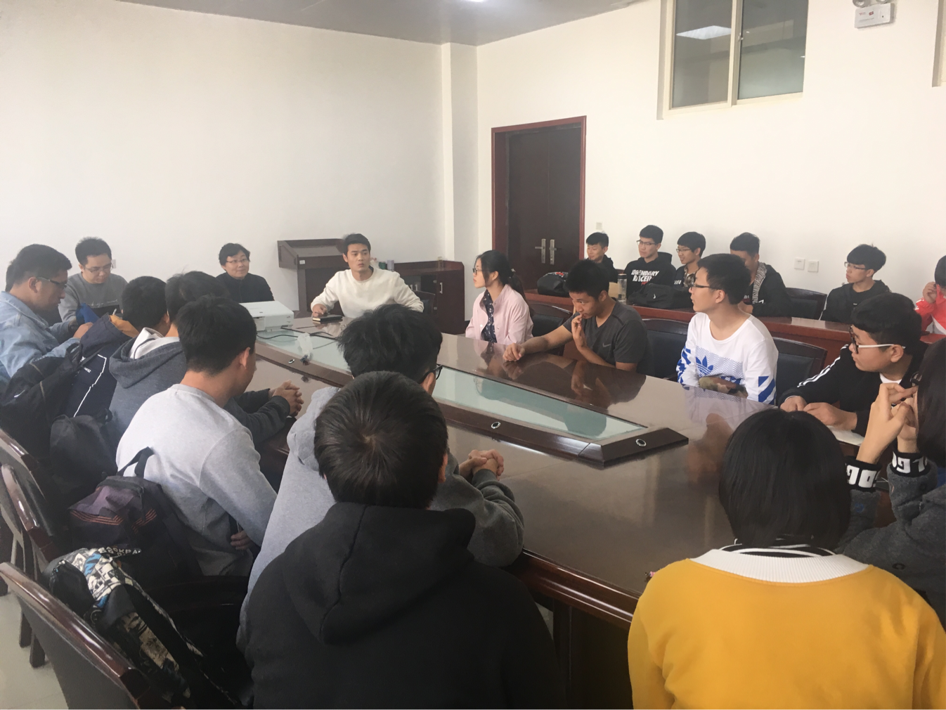 会议开始,由蒋丹烈老师进行发言,针对座谈会作用进行介绍,主要为师生交流,专业疑惑等并且对专业学生寄托殷切希望。希望学生认真听课,学好文化知识,打好基础。开拓更多方向,为就业做好打算。读研读博研究深造,争取名校。随后学生向老师提出问题,针对不同方面提出学生的疑惑,两位老师也都针对性的进行解答。学生也提出一些建议,老师悉心记录。最后,王倩老师做会议总结,建议趁早规划自己大学目标,殷切希望学生可以踏实努力,认真学习,多实践积累个人能力,并且建议多参加竞赛,参与课题实验。
