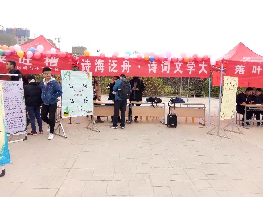 为了让同学们感受古典文学的魅力,领略中华文化的灵韵,传承中华诗词精髓,同时增强部门之间的交流,提升干事工作能力。材料与化工学院学生会于2017年11月22在经纬广场召开了“诗海泛舟”诗词文学大比拼开幕式。