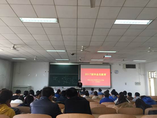 为了确保毕业生安全、文明离校,2017年4月17日至19日,材料与化工学院分三次召开年级大会,广泛开展2017届毕业生教育活动,主题是培育和践行社会主义核心价值观,确保毕业生安全、文明离校。