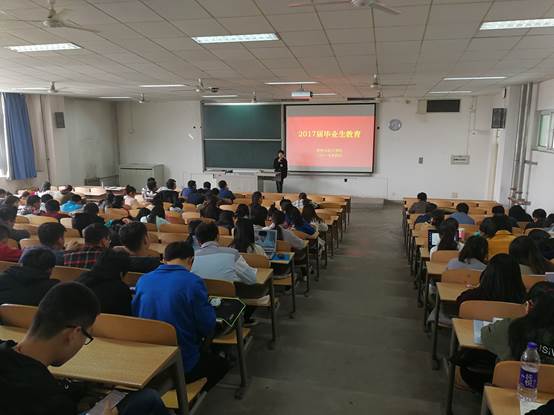毕业教育大会上,毕业班辅导员首先从思想上引领广大毕业生,组织毕业生党员认真完成“两学一做”学习教育,教育引导广大毕业生党员做合格党员,发挥核心骨干作用,积极投身建设中国特色社会主义事业的伟大实践。其次,陈老师强调,毕业上要爱校荣校。引导毕业生增强爱校荣校的荣誉感和使命感,营造温暖和谐的毕业氛围。随后,陈老师要求毕业生要感恩师友,激发学生对学校、师长的感恩情怀。最后,陈老师倡导毕业生要文明离校。