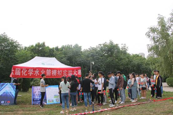 为培养大学生的设计、制作和创新能力,提高学校学生的科技素养,材料与化工学院科学技术协会特别举办化学水火箭模拟实验大赛。此次大赛于2018年5月27日在教一楼北边空地举行,到场的有材料与化工学院科学技术协会全体人员以及各组参赛选手。