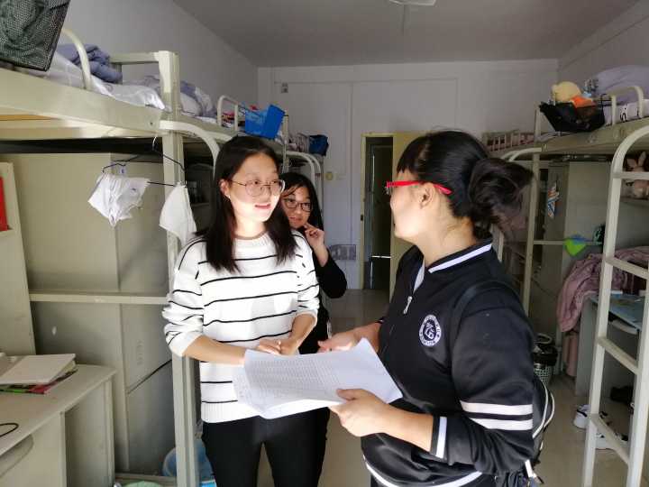 张瑞红老师高度重视宿舍卫生工作,着重检查检查了床铺、桌面、地面、阳台、门窗等各方面的卫生情况,要求学生对死角认真打扫,并对打扫卫生整洁干净的宿舍和不好的宿舍进行一一拍照,供学生学习和改正。同时关切问学生是否适应大学、集体生活和宿舍成员人际关系处理情况。在检查过程中还与学生交谈思想、学习和生活方面的话题。