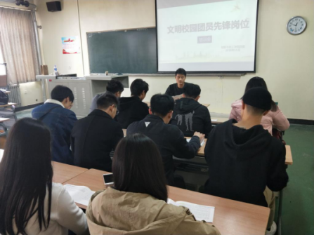 会上,段老师首先介绍我校创建省高教系统文明校园的背景,说明了创建文明校园的重要性和意义;接着,他带领大家详细学习了《创建省高教系统文明校园宣传手册》,要求团员先锋刚的同学们认真学习,对应知应会的内容熟记于心,并且要将手册中提到的相关要求贯彻落实;随后,段强老师向大家安排了大致工作,希望各位先锋岗团员能够以身作则,带领学院全体同学共同努力,营造一个更加有序的学习生活环境。至此,本次会议结束。
