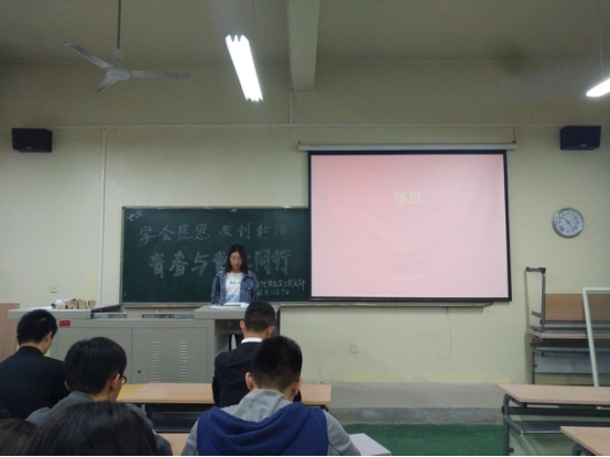 2018年11月8日傍晚六时,材料与化工学院学生第三党支部在工三-504召开了以“学会感恩、共创和谐——青春与责任同行”为主题的组织生活会。会议旨在引导学生党员学会感恩,懂得回报,主动承担党员义务。党支部书记段强老师及支部全体党员参加本次会议。