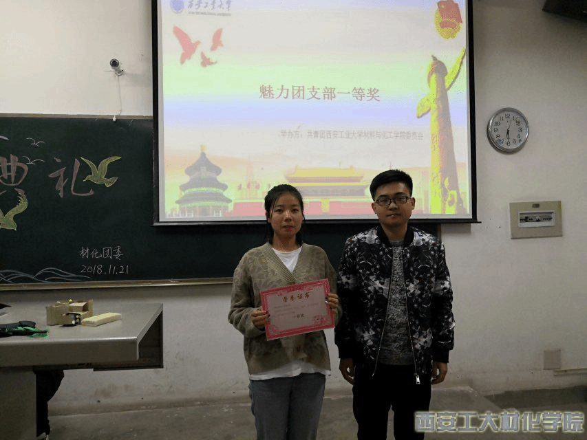 结合我院制定的“敦德励学三三行动”实施的方案,更好的在年级中开展团支部之间“学”、“比”等氛围。材料与化工学院于2018年11月21日下午六时半在教三-205举行“魅力团支部大赛”颁奖典礼,材料与化工学院团委副书记甄子清、团委副书记尹相伟、团委各部门部长出席本次活动。