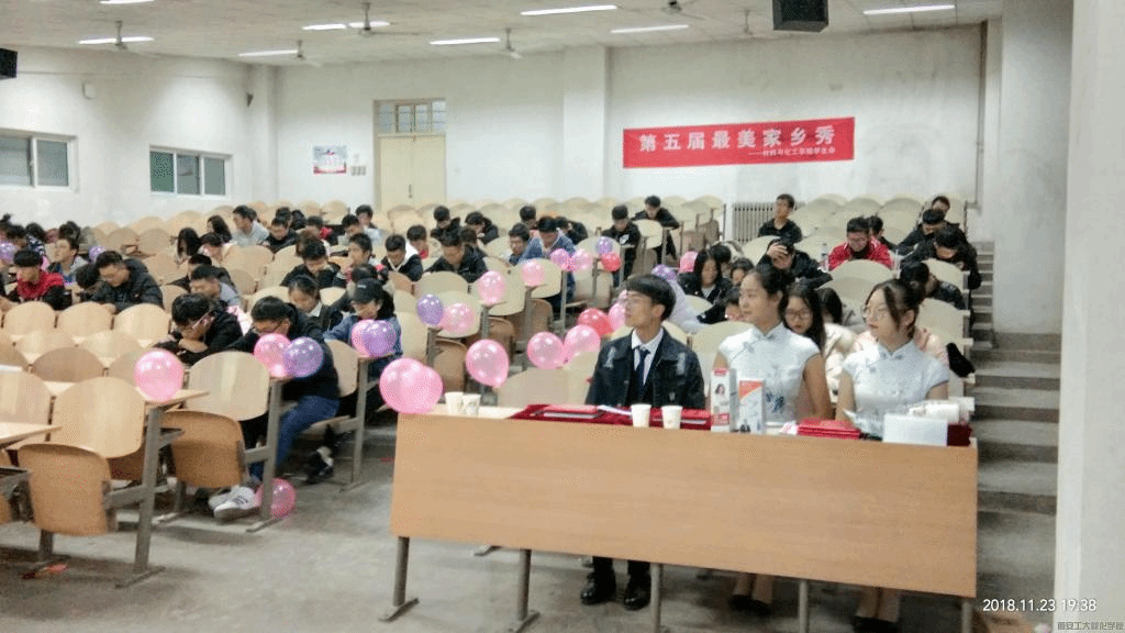 为展示祖国各地的风土人情,让同学们了解祖国的自然风光及人文情怀,体验祖国广博文化的魅力,同时丰富同学们的校园生活,材料与化工学院学生会于2018年11月23日晚七时在教一-104举办第五届“最美家乡秀”活动暨闭幕式。材料与化工学院学生会副主席毛小雨、科协副主席党林林、2017级学生代表车枭等学生会部长作担任本次比赛评委。