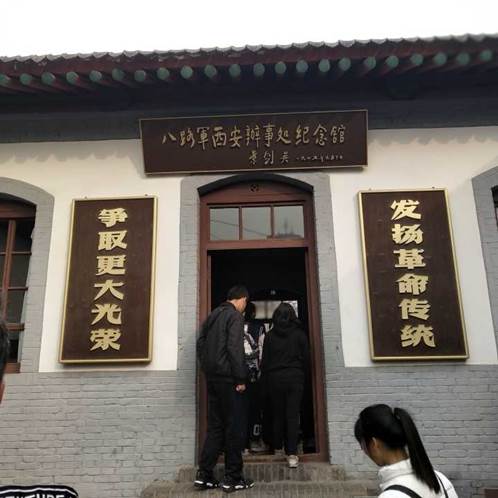 班级学生在八路军办事处门前集合。接着,学生在讲解员的带领下进入八路军办事处参观,一路上学生参观了叶剑英,冼星海,白求恩等多名革命先辈的住所、地下室以及临时手术室,了解到先辈的丰功伟绩,让学生得以感受到革命先辈的生活条件的艰苦,体会到革命成果的来之不易,与此同时,革命先辈们也苦中作乐,学生很幸运的在讲解员的带领下见到了他们当时的娱乐与运动方式,让人感触良多。随后,在参观过程中学生很荣幸的见到了当时的报纸,各种会议记录的手写版真迹以及革命先辈们穿的衣服等,虽然它们已经泛黄,但为学生还原了历史,见证了革命的发展。