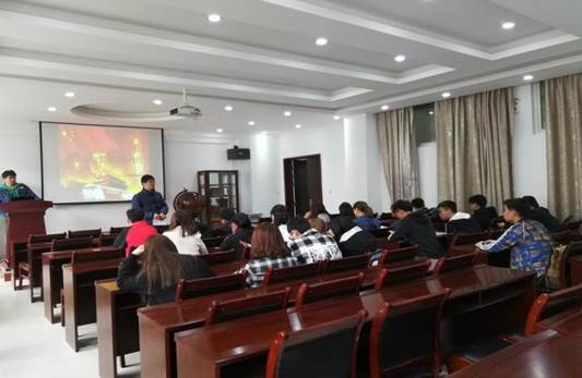 16030308团支部于工三-404组织召开了以“青春心向党,建功新时代”为主题的团日活动。团支书徐天德主持本次活动,结合PPT及当代大学生中的优秀事迹,呼吁全体同学脚踏实地、在校积极学习文化知识、锻炼个人能力、不荒废时光。