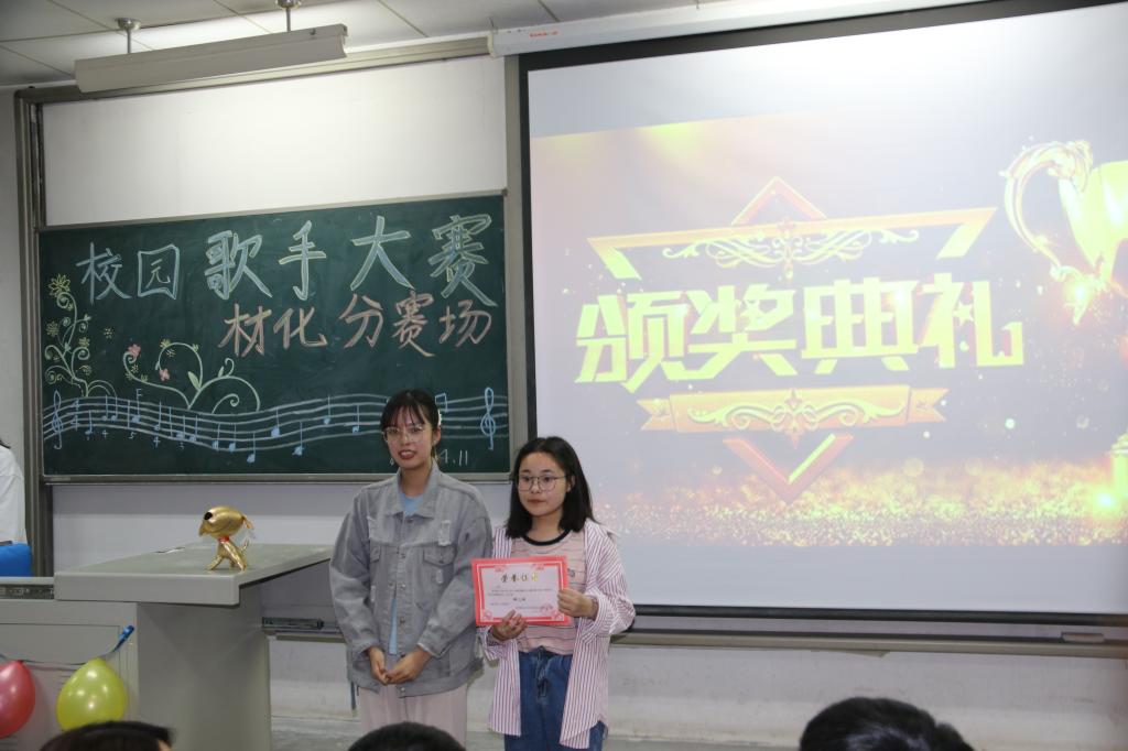 为丰富学生业余文化生活,努力营造活跃、和谐的校园文化氛围,积极推动我院精神文明建设,充分展现我院学生积极向上的健康风貌。材料与化工学院学生会于2019年4月11日19时在教二-210举办校园歌手大赛材料与化工学院分赛。我院学生会主席李一航、大艺团合唱团团长王毅豪、电子信息工程学院学生会文艺部副部长乔东伟、第27届校园歌手大赛优秀歌手李靖筠等人出席本次比赛。