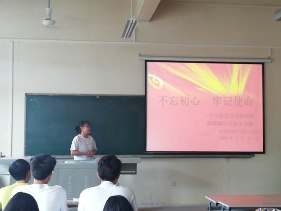 为更好地学习张富清老前辈的英雄事迹,更好激励学生党员,弘扬奉献精神。材料与化工学院学生第二党支部于2019年6月11日在工3-504开展“不忘初心、牢记使命”学习张富清奉献精神,凝聚新时代奋斗力量主题会议,此次会议由党支部书记张瑞红主持,第二党支部全体成员参加会议。