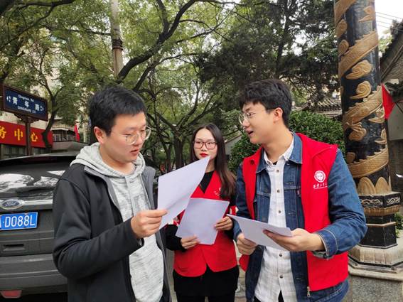 到达地点后,学生党员自行分为三组,组成“垃圾分类”宣传队,来到指定地点后,大家与过往的群众进行访谈和发放宣传单,并认真细心的讲解各种不同垃圾的放置,此外,宣传队员还通过手机视频,引导群众去观看垃圾场的处理方式以及难分解的垃圾,诸多群众看到纷纷表示垃圾分类的重要性,应携起手来,做好身边的每一件小事,共同保护地球环境。随后,全体党员来到一个居民小区,在垃圾桶旁为前专门为倒垃圾的人们讲解不同颜色的垃圾桶所放垃圾应如何区分,用具体行动强化大众的分类意识,这对于动员全社会共同为推动绿色发展、建设美丽中国贡献智慧和力量,具有十分重要的意义。