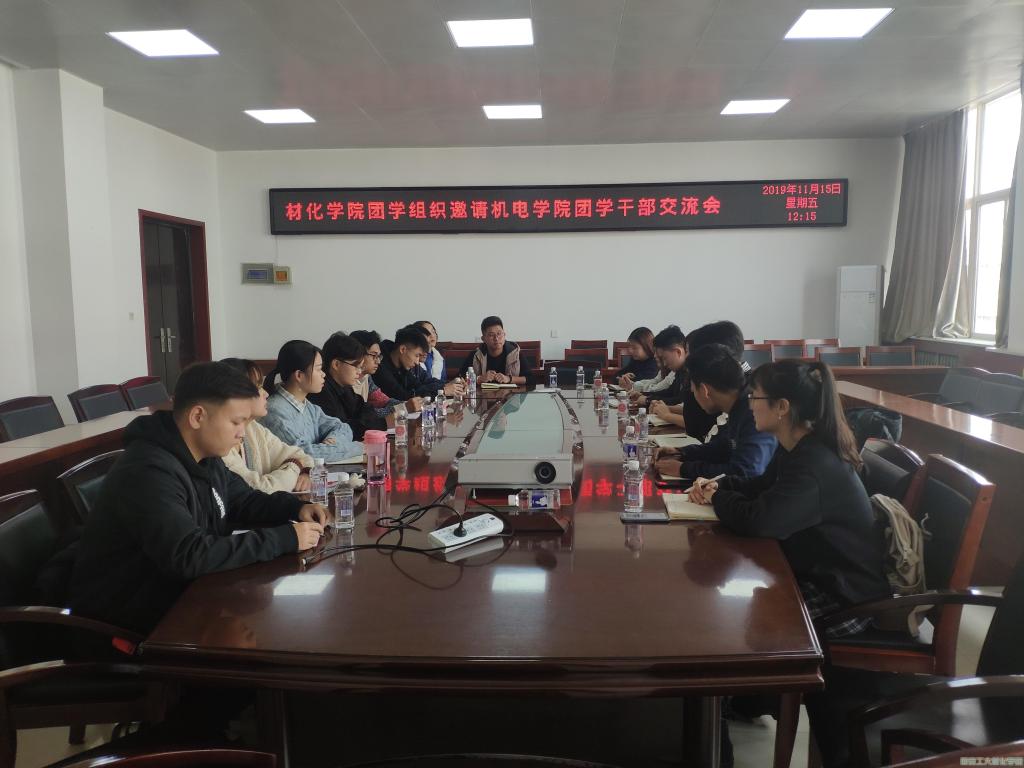 2019年11月15日12时,材料与化工学院团学组织邀请机电工程学院团学干部在工三-410开展工作经验交流会。会议旨在通过工作交流与经验分享,促进两院在年度工作中取长补短、共同进步。两院团委、学生会、科协团学干部参加本次会议。