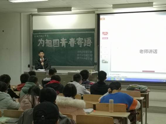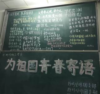 为提升团组织基层活力,激发团员爱国热情,树立远大理想2019年11月18日,材料与化工学院19030208团支部、19030209团支部和19030310团支部在教2-406开展“为祖国青春寄语”主题团日活动,用青春之笔为祖国喝彩。