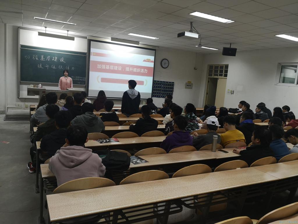 首先,由团支书樊如玉组织各团支部学习习近平总书记最近的有关“全面加强基层组织建设着力提升组织力量”的讲话,观看讲话的视频,让大家对加强基层建设有一个了解。接着,团支书曹若琳强调,习近平总书记在全国组织工作会议上,形象的将党的基层组织比喻为党的肌体的“神经末梢”,并特别强调 “欲筑室者,先治其基。”基层党组织是党执政大厦的地基,地基固则大厦坚,地基松则大厦倾。为了进一步加强各团支部在党的建设中的基层作用,增强各团支部之间的合作能力。