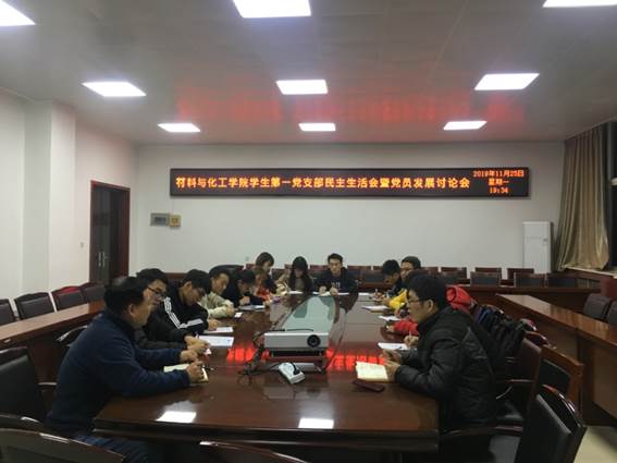 2019年11月25日19:00,材料与化工学院学生第一党支部在工三—410开展“党员批评与自我批评民主生活会”以及“党员发展讨论会”。参加本次会议的有材料与化工学院党委书记惠增哲及学生第一党支部全体成员。会议由支部书记王国栋主持。