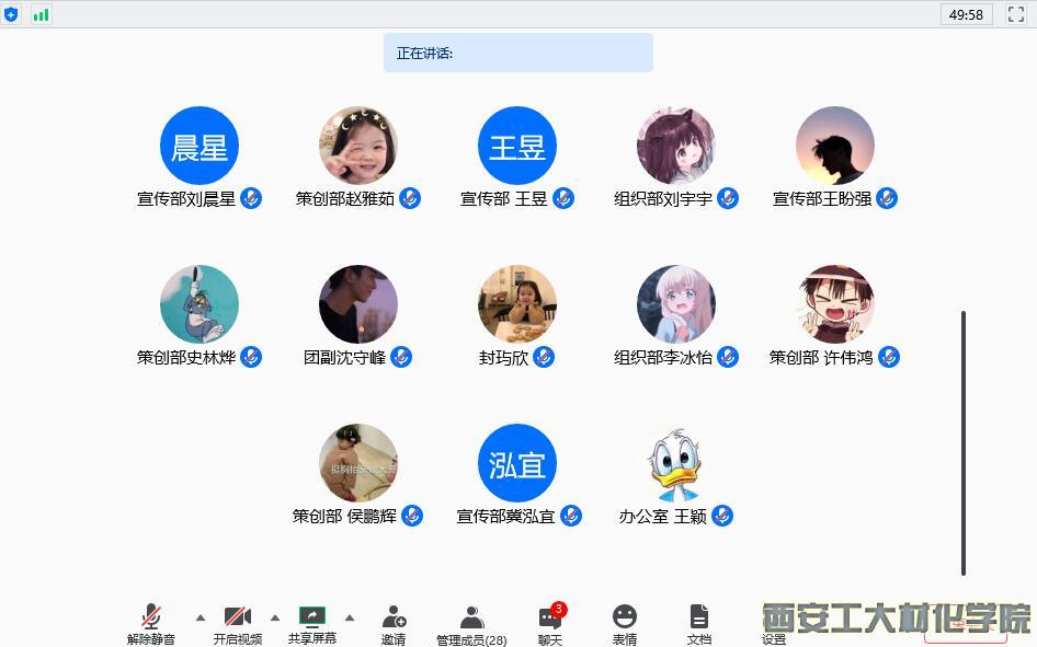 在宣传部干事苗嘉宇的主持下,本次理论学习会正式开始。首先,宣传部干事苗嘉宇对世界卫生组织进行初步介绍,并对习近平总书记的讲话内容发表自己的见解。他谈到我国在抗击疫情方面取得阶段性胜利后,及时派遣医疗队支援其他国家,为世界抗击疫情事业做出突出贡献。接着,由各部门的干事就习近平总书记的讲话发表自己的看法,其中办公室干事李叶静讲到,我国在面对新冠肺炎疫情时举国上下团结一心,各地出台相应政策,积极抗击疫情,通过不懈努力,有效的控制住了疫情蔓延,为国际抗疫争取宝贵时间,展现大国担当。最后,主持人对此次学习会进行总结,希望大家深刻学习并领悟我国在抗疫期间对世界的贡献,增强民族责任感以及使命担当精神。至此,本次学习会圆满结束。