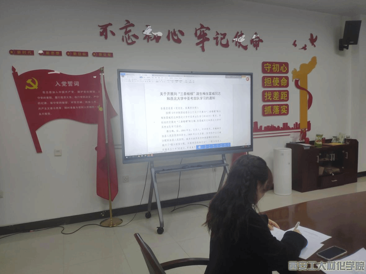为深入学习贯彻党的十九届五中全会和习近平总书记来陕考察重要讲话精神,充分发挥先进典型的示范引领作用,培育和践行社会主义核心价值观,2021年3月29日,材料与化工学院学生第四党支部开展向“三秦楷模”路生梅、张雷威同志和西北大学中亚考古队学习的会议。支部全体党员按时参加。