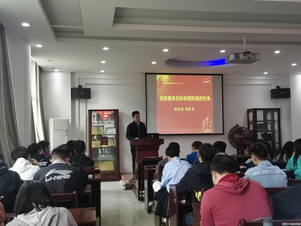 本次党课培训的主题是“党的最终目标和现阶段的任务”。会议伊始,赵伟奇老师先以解读党的纲领介绍了党的最高理想——实现共产主义;其次,赵伟奇老师讲解了党的最终目标是实现共产主义社会,并且说明了“共产主义社会基本特征”和“共产主义发展途径”两项内容。会议最后,赵伟奇老师结合自身事例为大家介绍了党的现阶段任务。党课培训会上,每一位入党积极分子都全神贯注地听讲,认真地记录笔记。