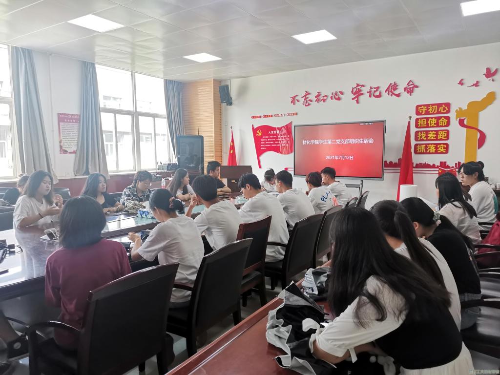 学习党史,不忘初心。为加强党员教育,提升党性修养。2021年7月12日中午,材料与化工学院学生第二党支部在工3-410开展党支部党史学习教育专题组织生活会,学生第二党支部全体党员参加本次会议。