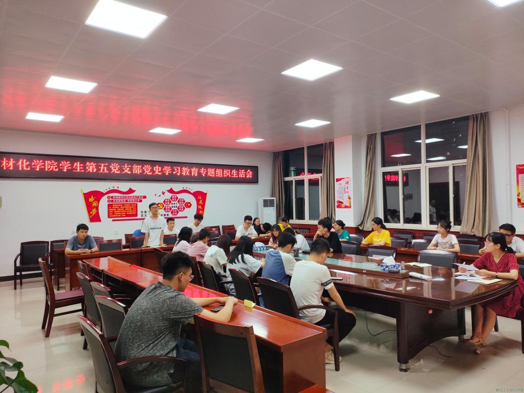 按照学校《关于认真做好党史学习教育专题组织生活会的通知》文件精神,7月8日,材化学院学生第五党支部于工3-410会议室召开党史学习教育专题组织生活会,支部书记乔娜和全体学生党员参加,会议由支部副书记吕雪敏主持。