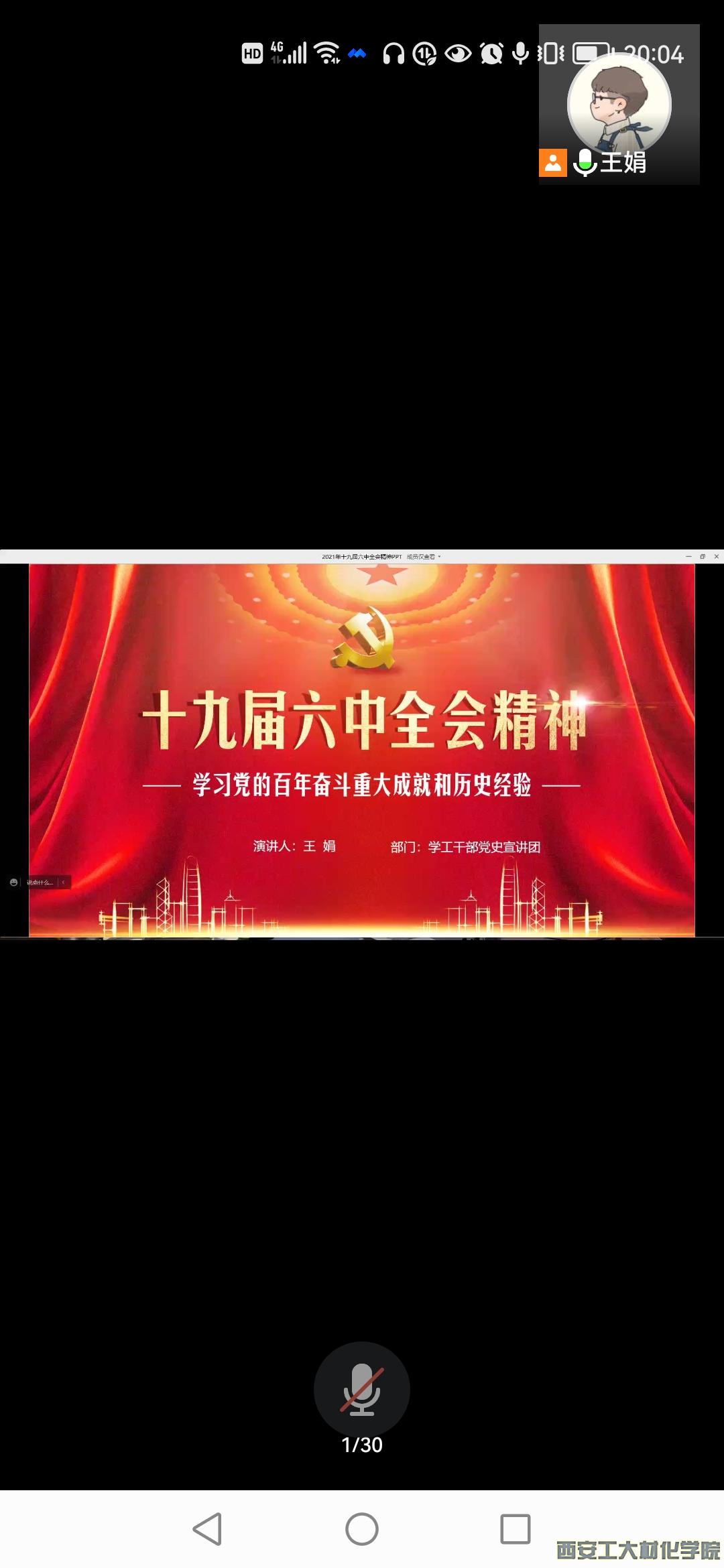 在中国共产党成立100周年之际,为了使大学生更加熟悉了解党的奋斗历程,学习十九届六中全会精神,肩负起中华民族伟大复兴的重任,材料与化工学院特邀请基础学院王娟老师于2021年12月22日19:30在腾讯会议开展本次宣讲会。参加本次宣讲会的有材料与化工学院18,19,20级学生。