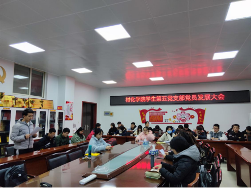 2021年11月29日,材料与化工学院学生第五党支部在工三-404召开党员发展大会,就党员发展进行审议并履行程序,本次发展对象是于群业、靳家辉、闫哲佩和徐子涵4名同志。党支部书记乔娜、全体学生党员和发展对象出席本次会议,会议由支部副书记吕雪敏同志主持。