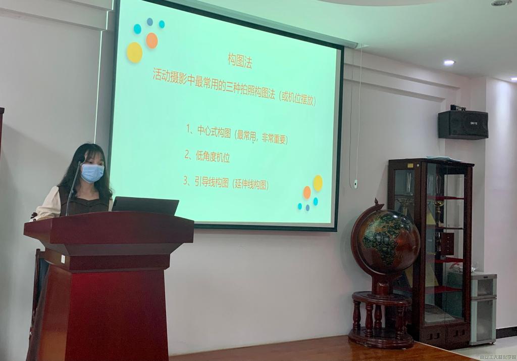 会议伊始,学生干部任嵘芝说明了召开此次技能培训会的目的。任嵘芝表示,召开本次会议旨在让团学各组织的学生干部了解并学习摄影的技能和方法,以便后续工作能顺利开展。随后,任嵘芝以之前活动中的照片为例,通过对比的方式,详细讲解了活动摄影中最常用的三种拍照构图法以及各种方法的适用场景。会议最后,任嵘芝建议所有参会人员都要熟练掌握和运用所学知识,为高效率开展今后的工作打下坚实的基础。