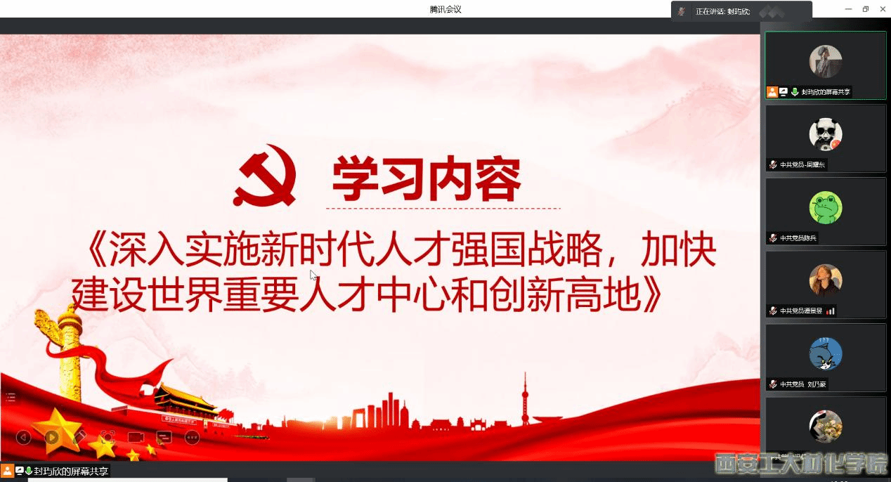 材料与化工学院学生第四党支部于2022年1月29日晚7:30,本次理论学习在腾讯会议线上举行。学习主题为“深入实施新时代人才强国战略,加快建设世界重要人才中心和创新高地”。材料与化工学院学生第四党支部全体党员以及预备党员参加了此次理论学习会议。