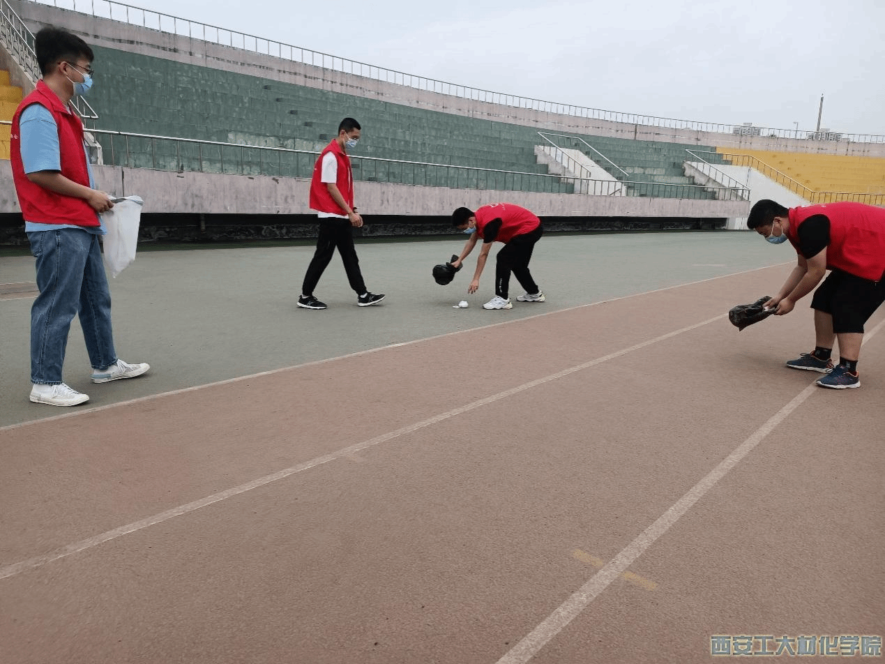 4月24日,材料与化工学院学生第三党支部于西安工业大学校内开展“拾捡田径场垃圾-美化校园”志愿服务活动。支部书记段强以及部分学生党员参加此次志愿服务活动。