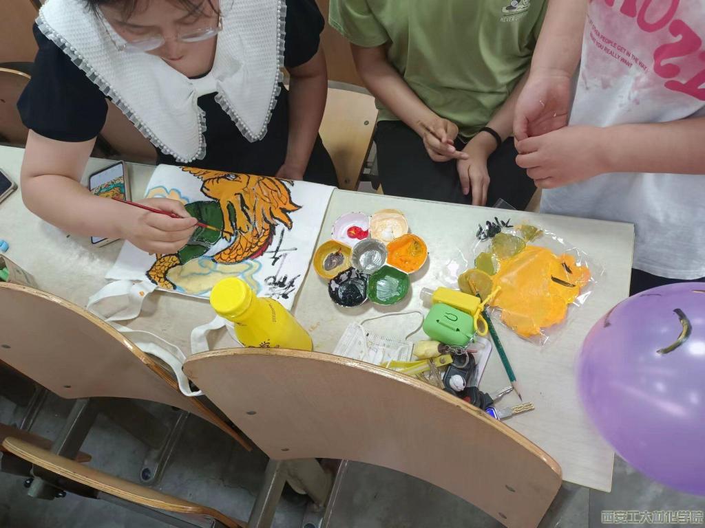 活动分为端午香包制作、卡纸绘画剪裁、衣物布袋绘画三个部分。包中香黍分边角,彩丝剪就交绒索。端午香包制作项目开始前,工作人员对端午的习俗以及端午节制作香包的来历进行了介绍。比赛开始后,参赛选手纷纷穿针引线,认真细心地缝着式样各异的香包,空气中也氤氲着艾叶的气味,让人沉心静气。卡纸绘画剪裁与衣物布袋绘画比赛现场纷繁盛大、气氛活泼,参赛选手在掌握了基本的绘图、剪裁技巧后,便开始了艺术创作过程。大家时而潜心作画,时而上下摆动剪刀,整个比赛氛围犹如智慧在指间流转,剪刀在纸端跳跃。比赛结束后上交的作品生动形象、活灵活现,展现了当代大学生积极向上的精神风貌和极高的艺术素养。