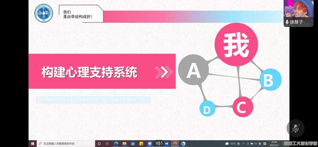 为进一步提高学生的心理素质,提高学生心理健康意识,6月1日下午,材料与化工学院2020级召开了“我们是由奇迹构成的”心理健康主题会议。会议由2020级辅导员徐慧子主讲,2020级辅导员段强和2020级全体学生参加了本次会议。