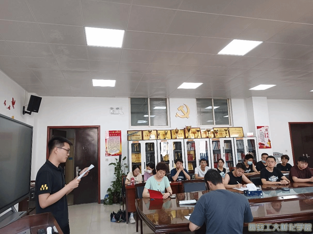 本次会议由支部书记段强主持。会议分为四项。第一项,由党支部副书记薛清泽带领支部成员进行《习近平在庆祝香港回归祖国二十五周年暨香港特别行政区第六届政府就职典礼上的讲话》、《习近平总书记关于教育的重要论述资料汇编》理论学习;第二项,党支部书记段强结合党史学习教育做2022上半年支部工作总结,明确查摆本支部的问题和不足;第三项,支部全体党员开展批评与自我批评。首先段强带头对自己在半年的支部建设和管理上提出自身的不足以及改善的层面,支委会以及其他党员分别从思想、生活、学习对自己进行检讨并作出改正。第四项,按照学院党委要求,针对材化学院关于西安工业大学第三次党代会学生党代表补选工作,支部从13名学生党员候选人中通过无记名投票,推选出2名候选人。