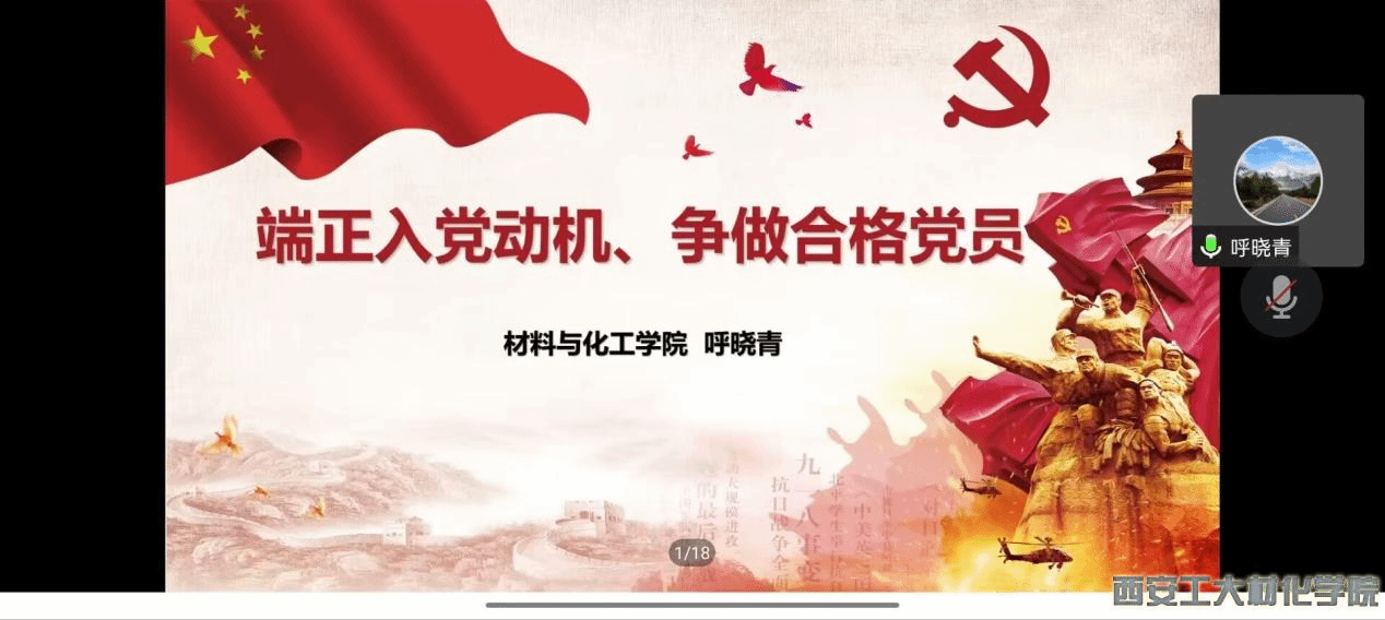 为了端正大学生的入党动机,引导广大积极分子早日成为一名合格的共产党员,材料与化工学院分党校于2022年11月1日晚召开线上第六十五期入党积极分子培训班第一次理论培训。本次培训以“端正入党动机,争做合格党员”为主题,由材料与化工学院党委书记呼晓青主讲。