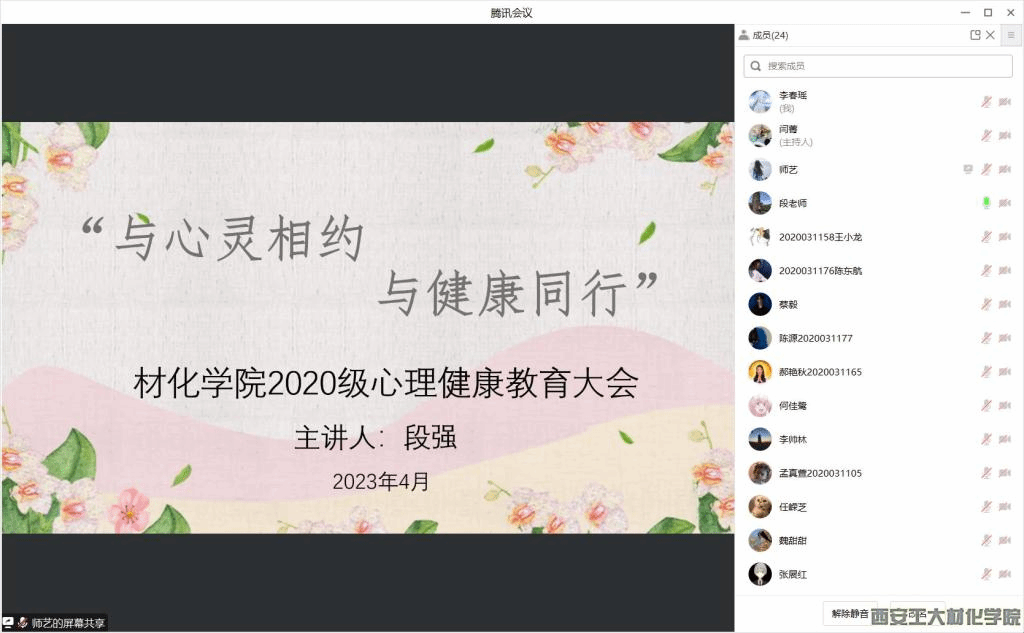 为进一步加强安全教育,提升学生的安全意识,筑牢安全防线。4月7日,材料与化工学院2020级于工3-404,召开全体学生安全教育大会,大会分为线上和线下同时进行。会议由辅导员段强主持。